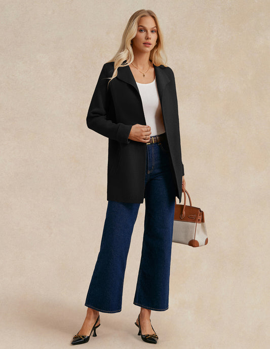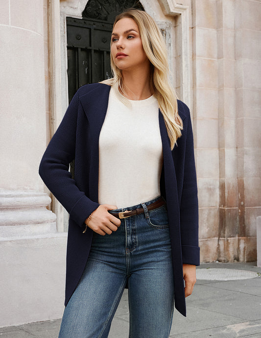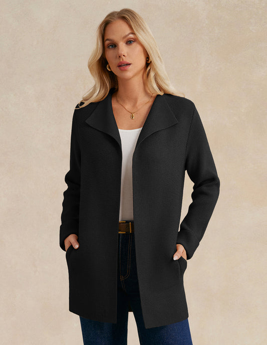 GK Women Fully Textured Cardigan Long Sleeve Lapel Collar Open Front Sweater