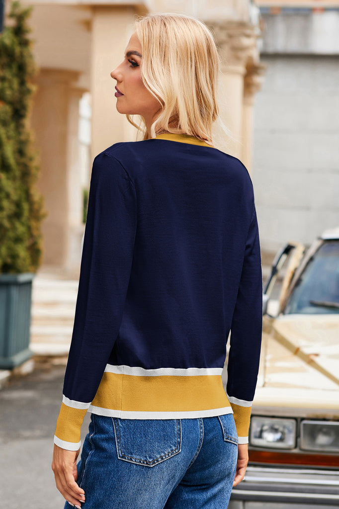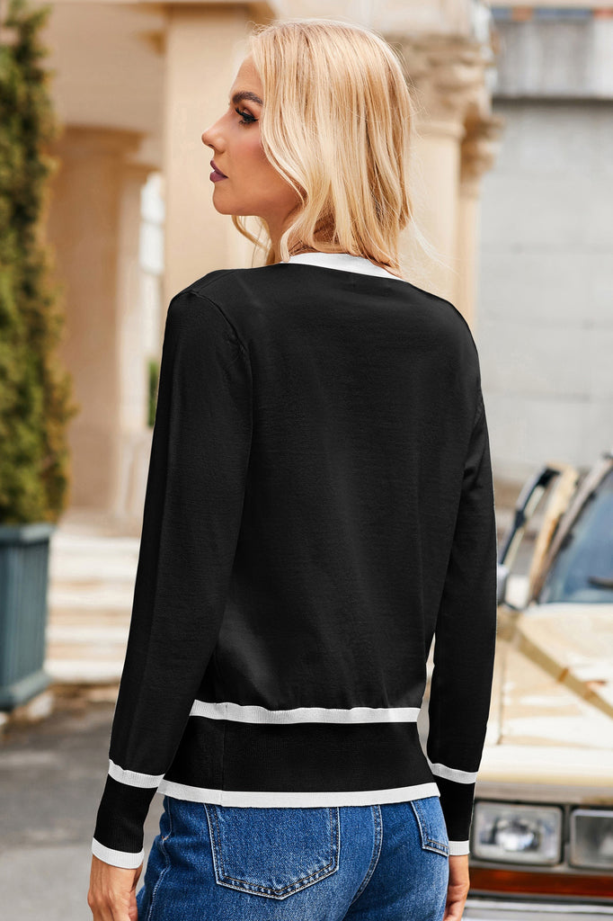 Contrast Color V-Neck Long sleeve Knitted Cardigan