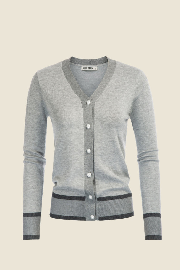 - Features: Contrast Design, Slim Fit, Long Sleeves, V-Neck Top, Button Down Front, Ribbed Bottom Hemline and Cuffs, Comes in Both Regular and Plus Sizes