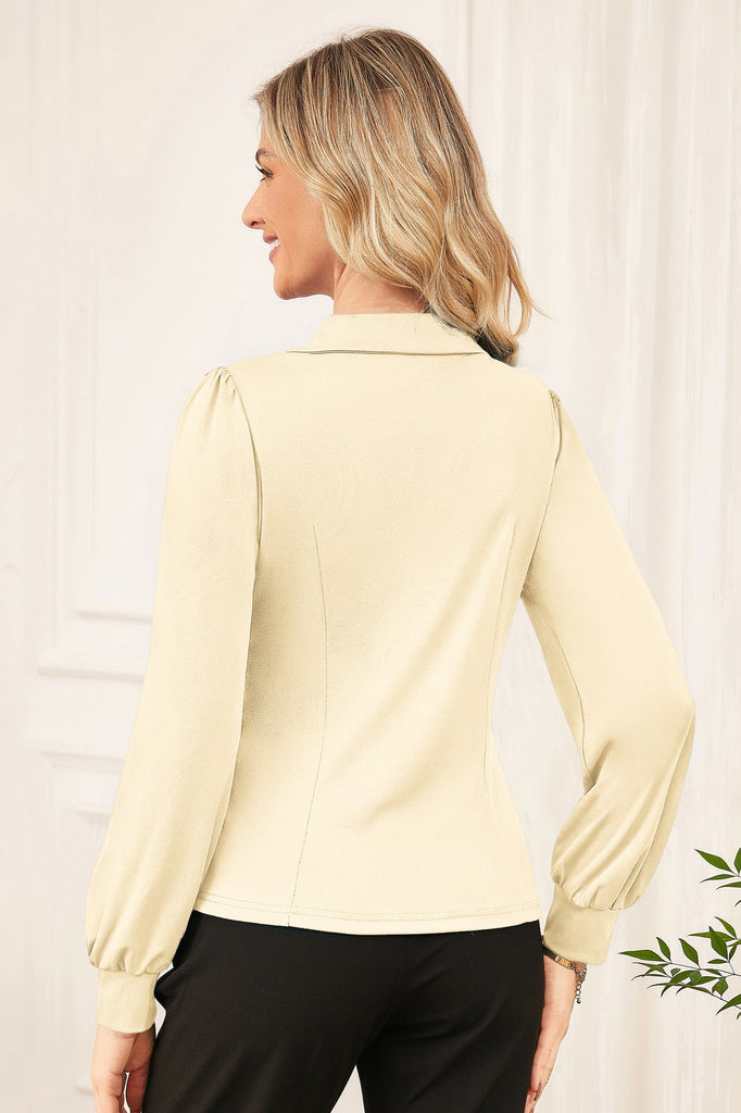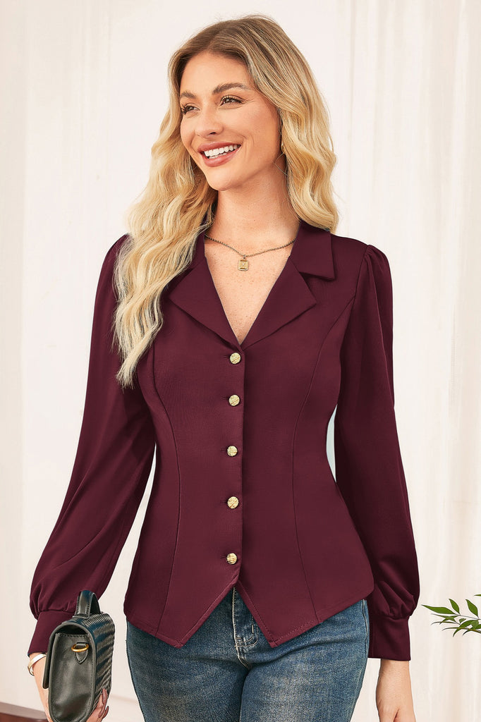 GK Women Lapel Collar Tops OL Long Sleeve V-Neck Handkerchief Hem Button-up Tops