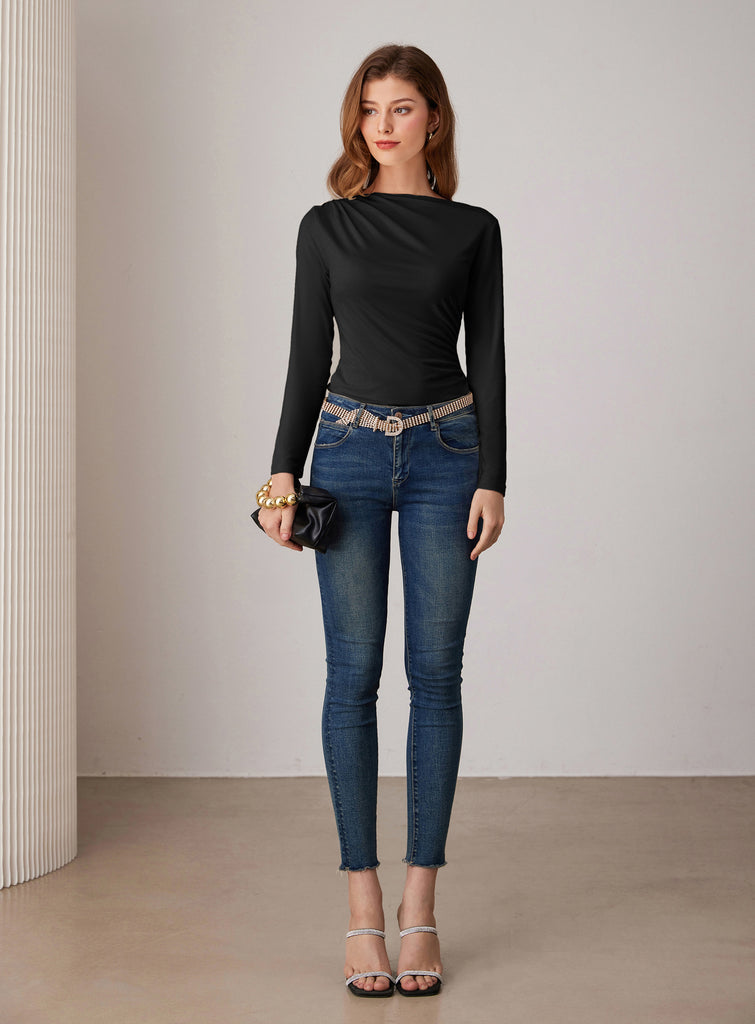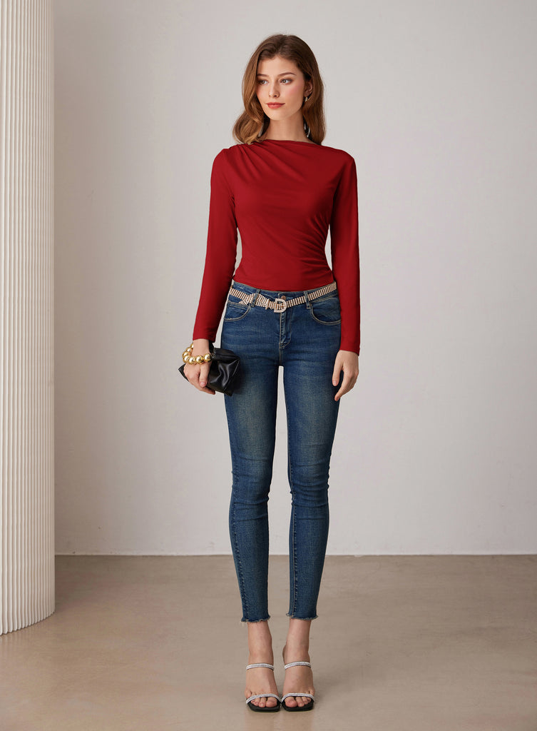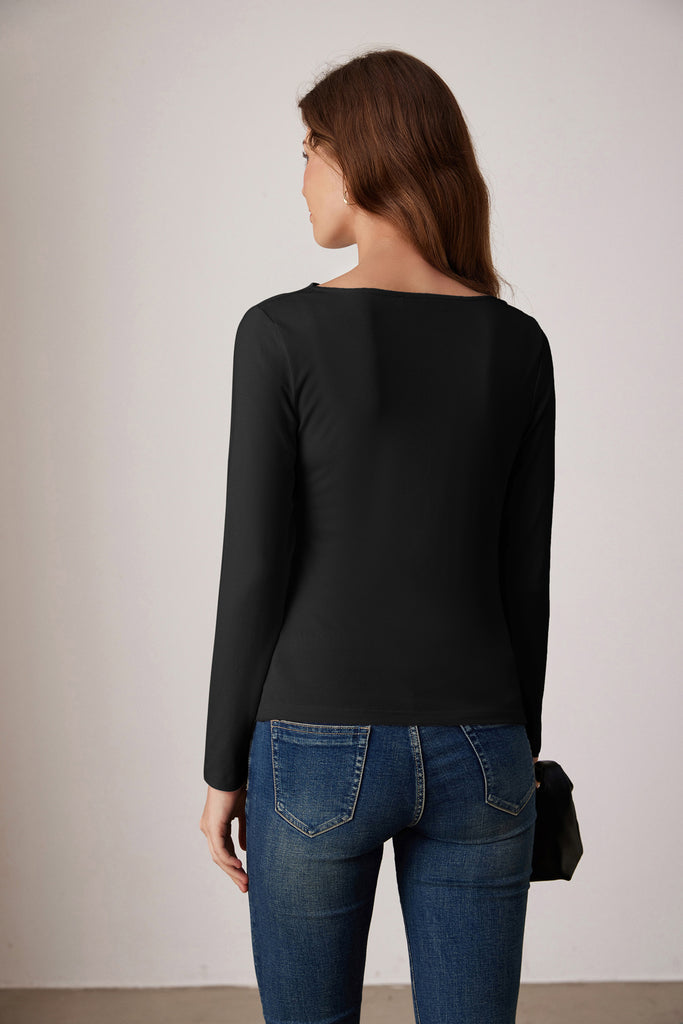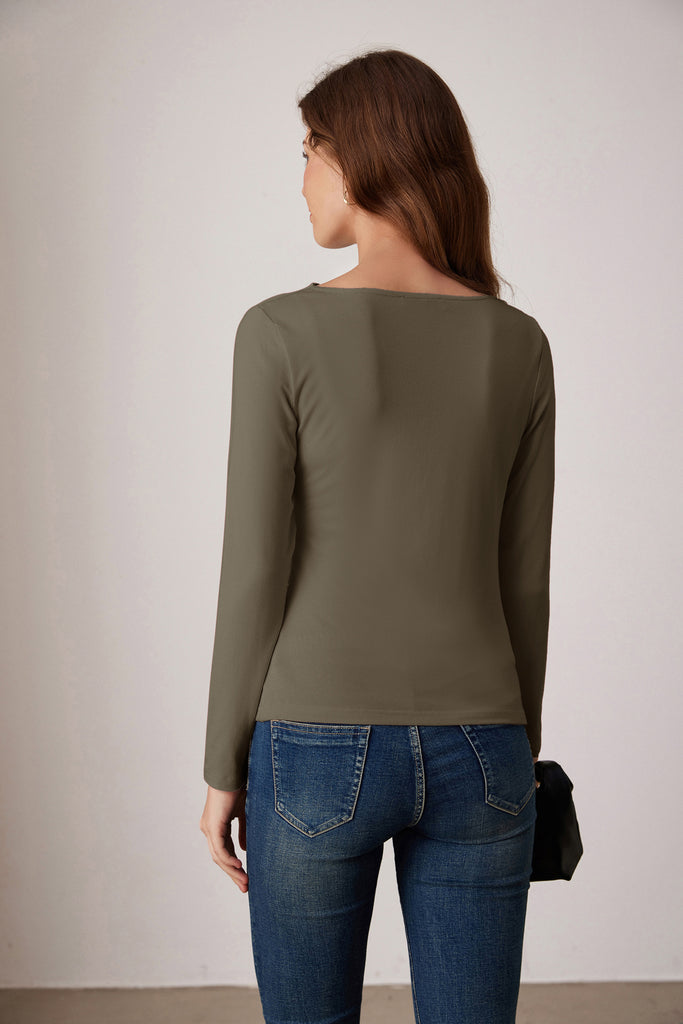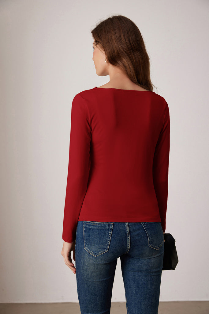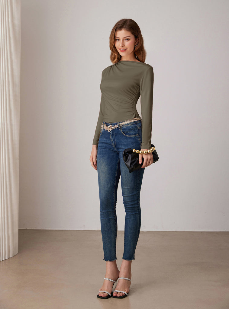GK Women Ruched Party Tops Comfy Long Sleeve Boat Neck T-Shirt Tops