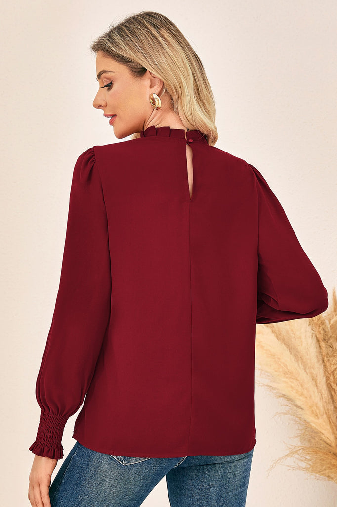 GK Women Ruffled Stand Collar Tops Casual Long Sleeve Pullover Tops