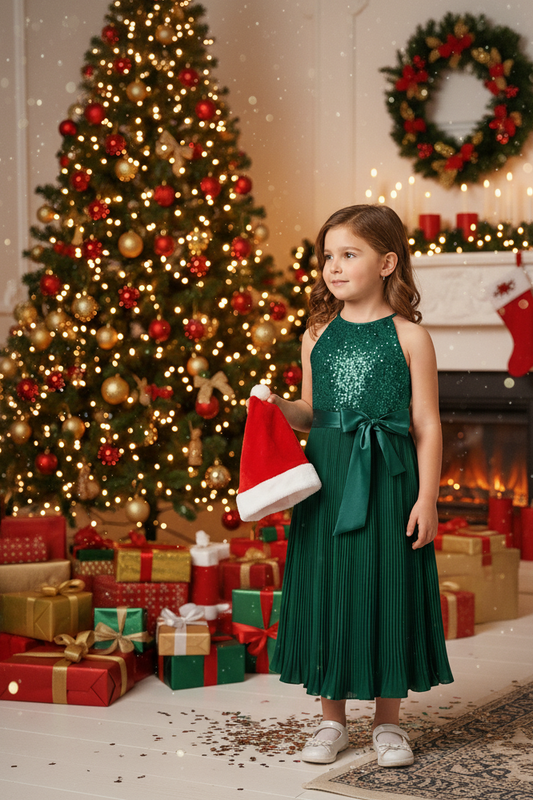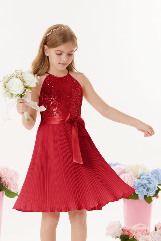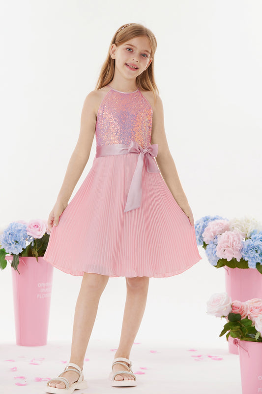 GK Kids Sequin Patchwork Party Dress Little Girls Halterneck A-Line Dress