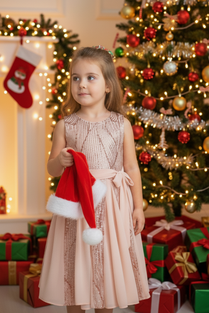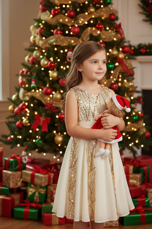 GK Kids Sequined Party Dress Girls Sleeveless Crew Neck Flared A-Line Dress