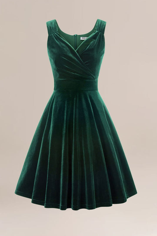 Velvet Sleeveless V-Neck Flared Party Dresses