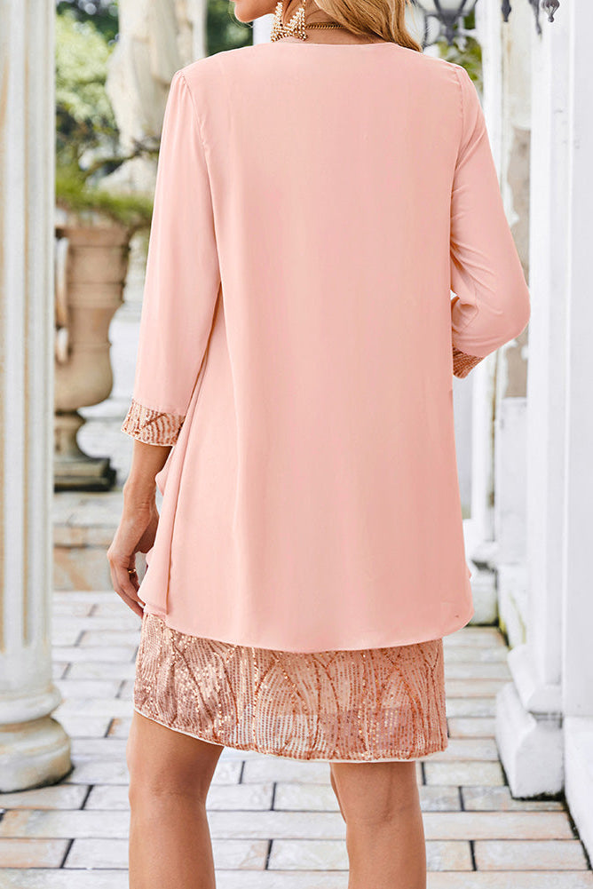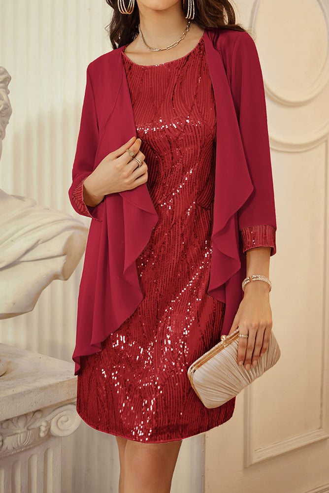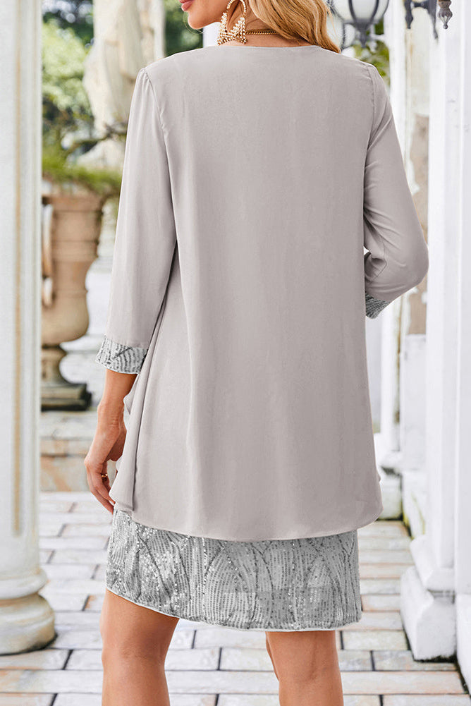 GRACE KARIN 2pcs Set Party Outfits Crew Neck Sequined Dress+Cover-up