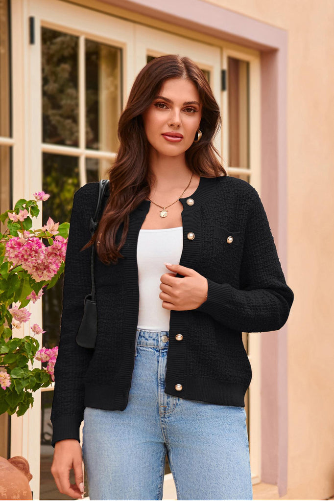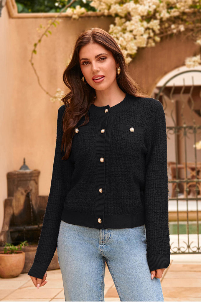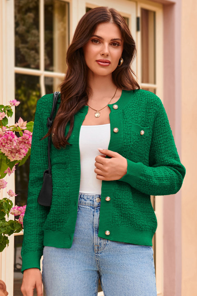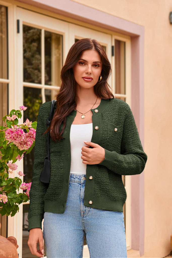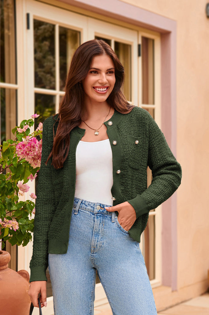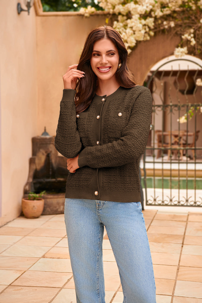 GK Open Front Button Down Long Sleeve Texture Knit Sweater Cardigan