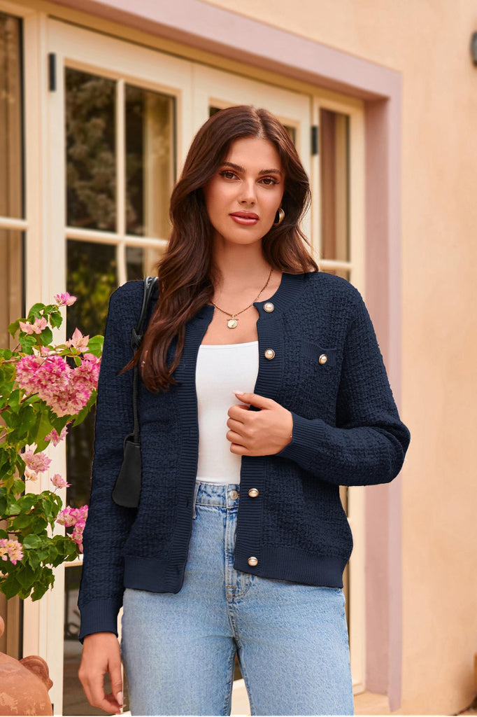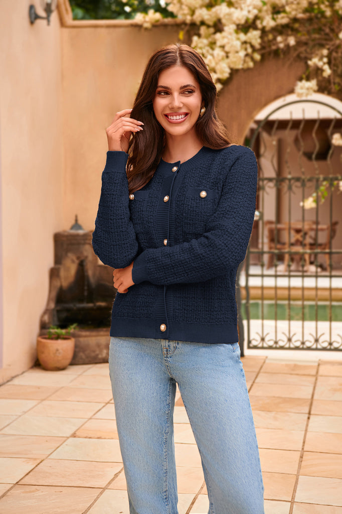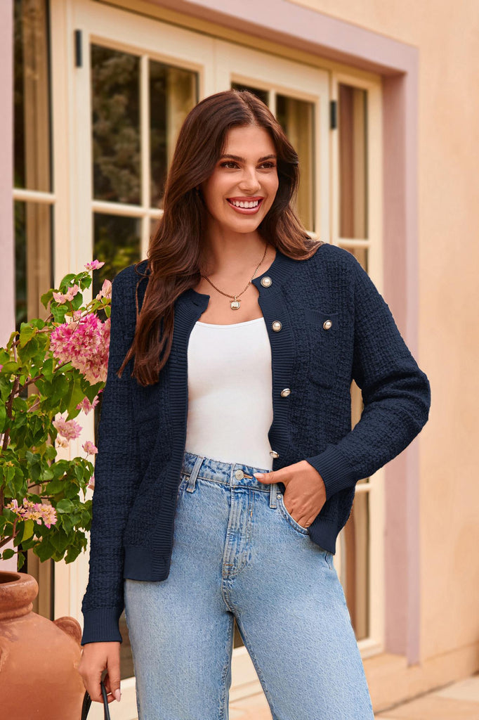 Upgrade your wardrobe with our Women's Open Front Button Down Long Sleeve Texture Knit Cardigan Sweaters with Pockets. Perfect for layering, this cozy and stylish cardigan offers both comfort and functionality. Ideal for any season, it pairs effortlessly with your favorite outfits.