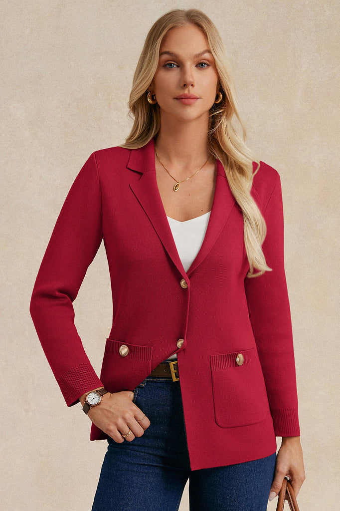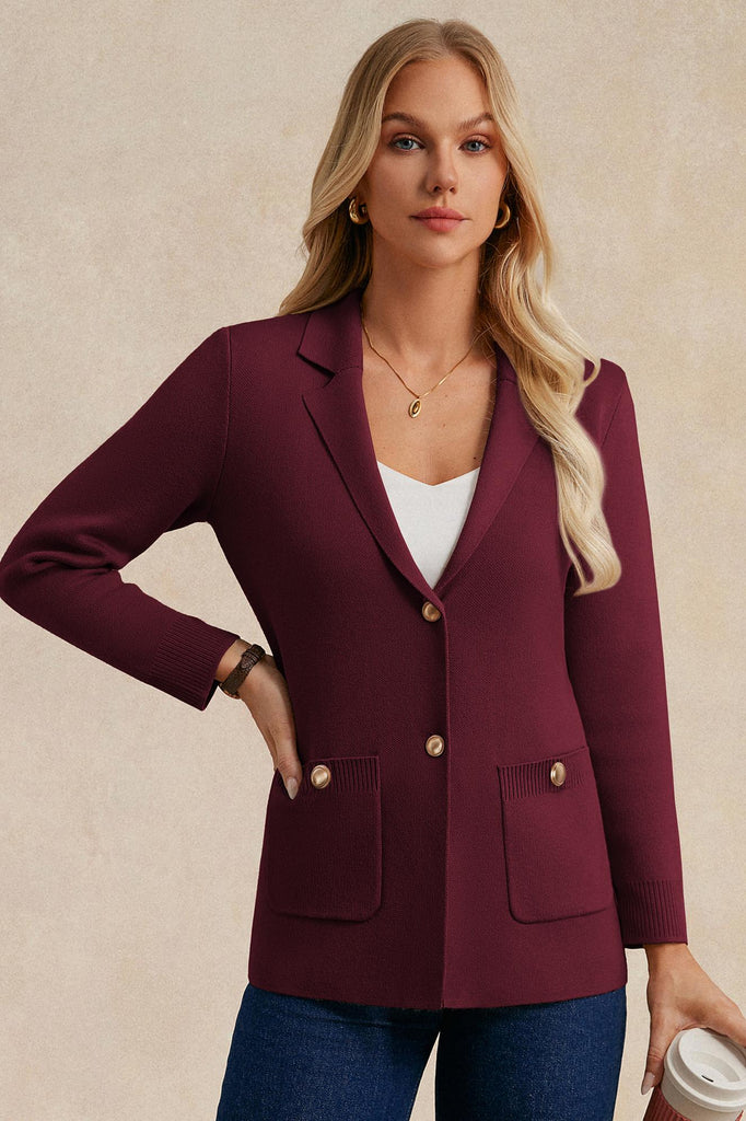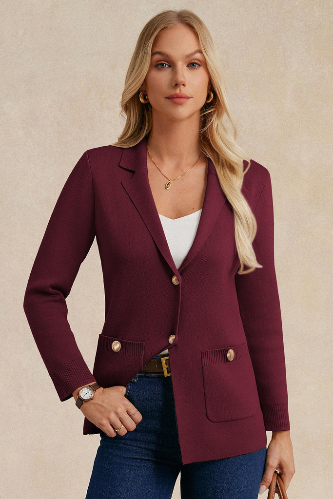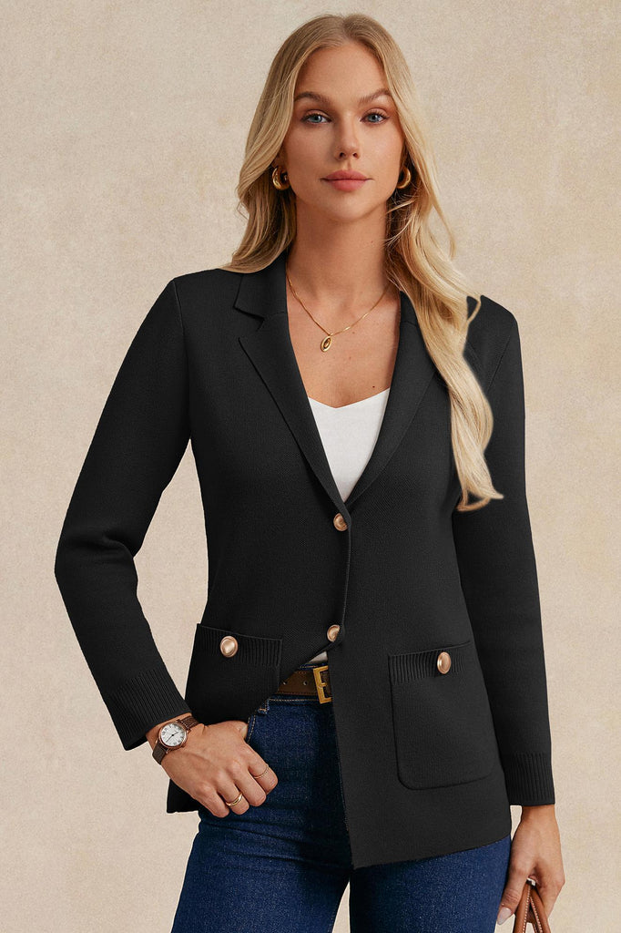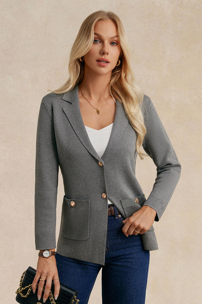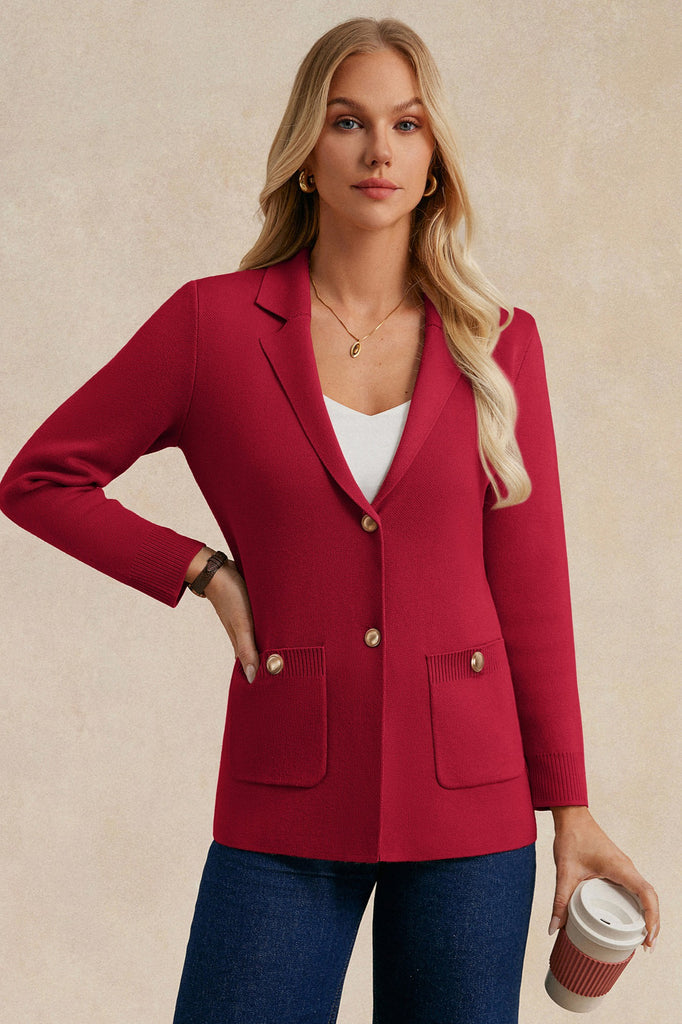 GK Women Notch Lapel Cardigan Long Sleeve Two-Button Straight Sweater