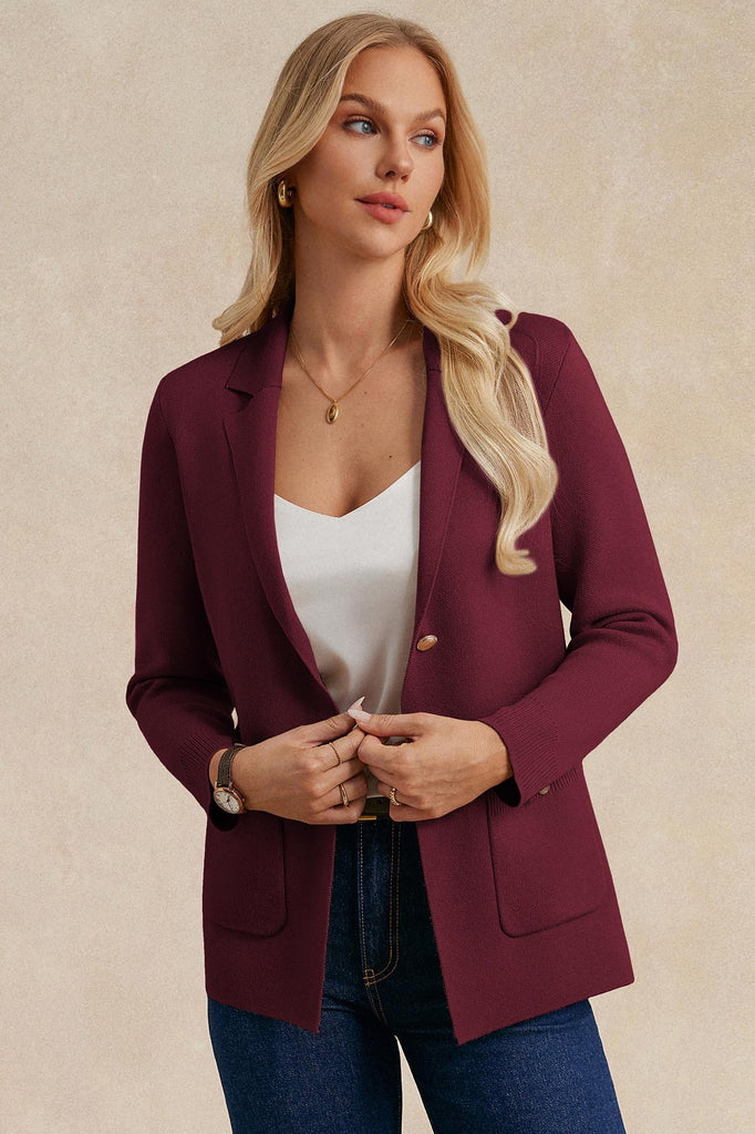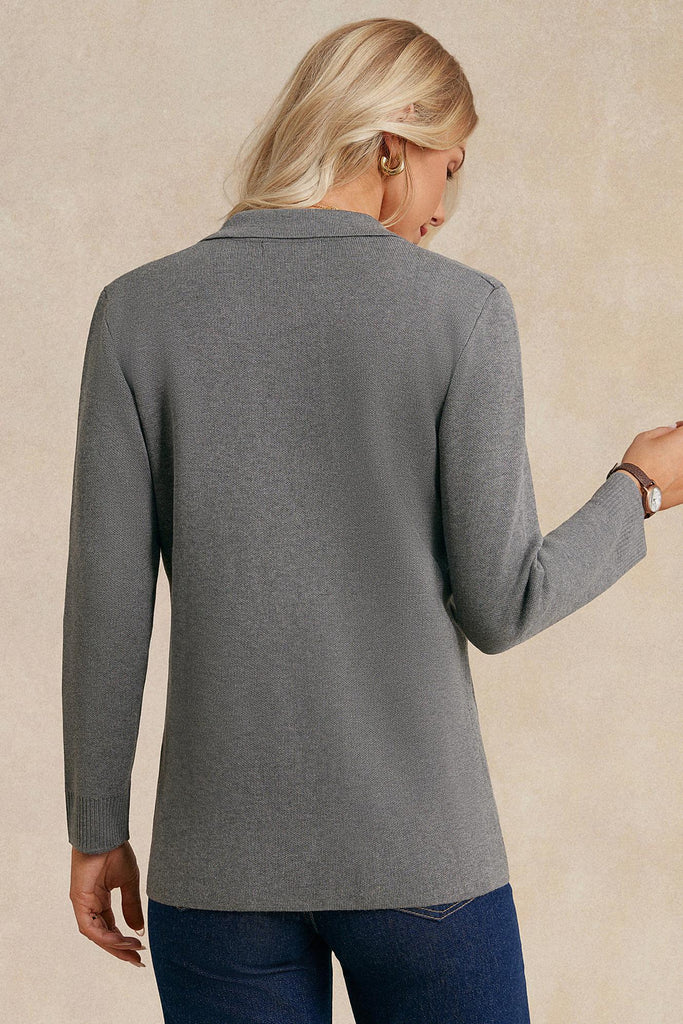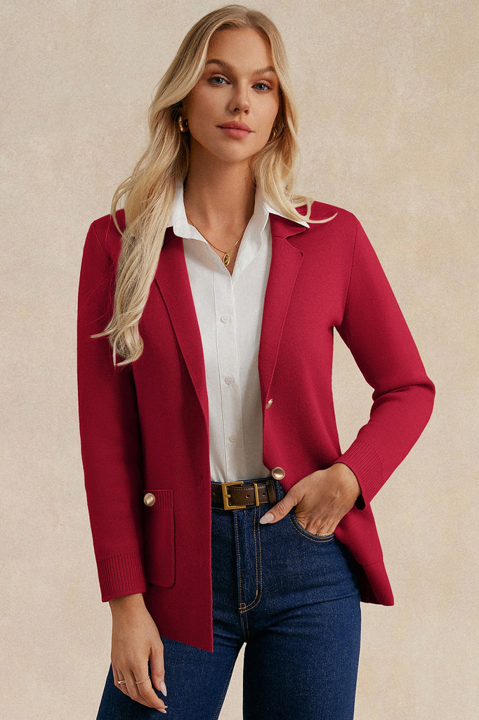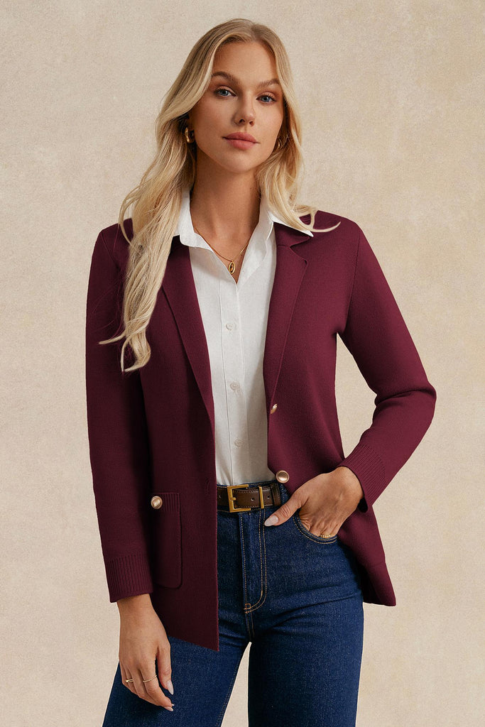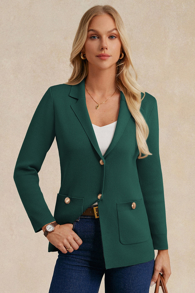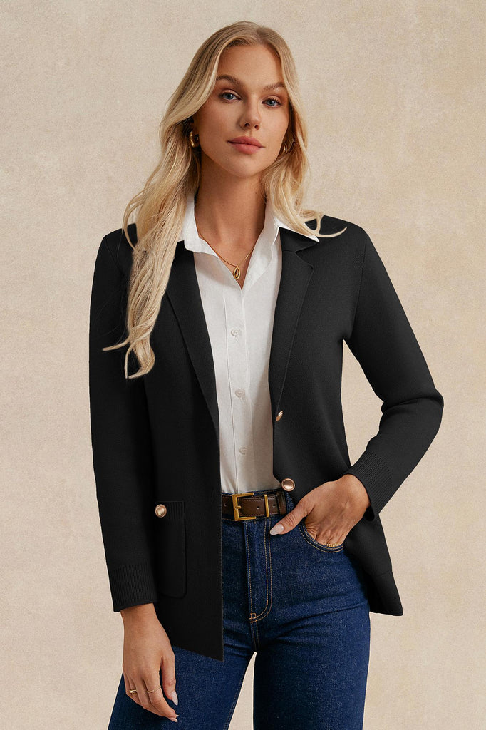 GK Women Notch Lapel Cardigan Long Sleeve Two-Button Straight Sweater