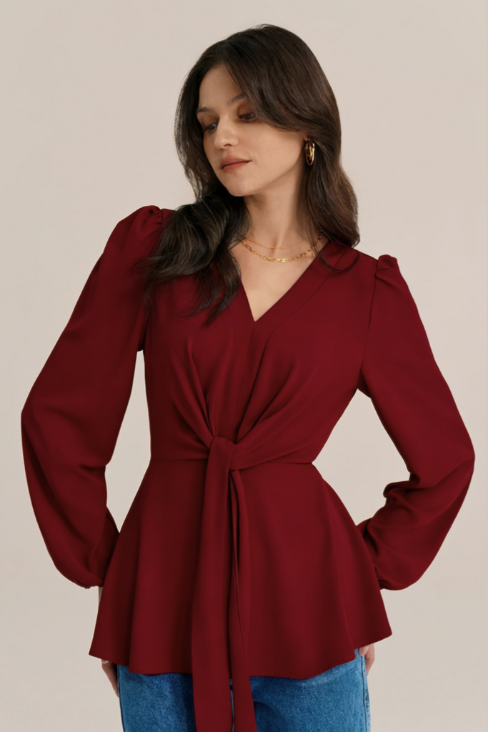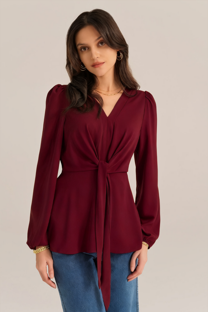 Stay effortlessly chic with this A-line tops. The V-neckline adds a touch of trendy. The bow-knot detail adds a playful and sweet element to the tops, making them perfect for both casual and semi-formal occasions.