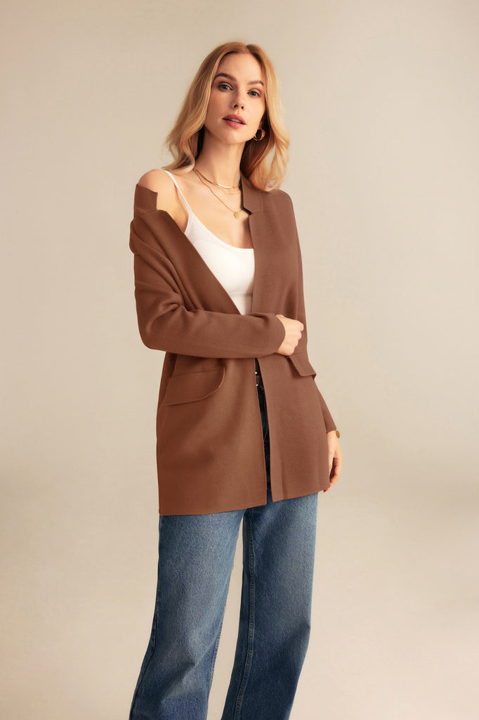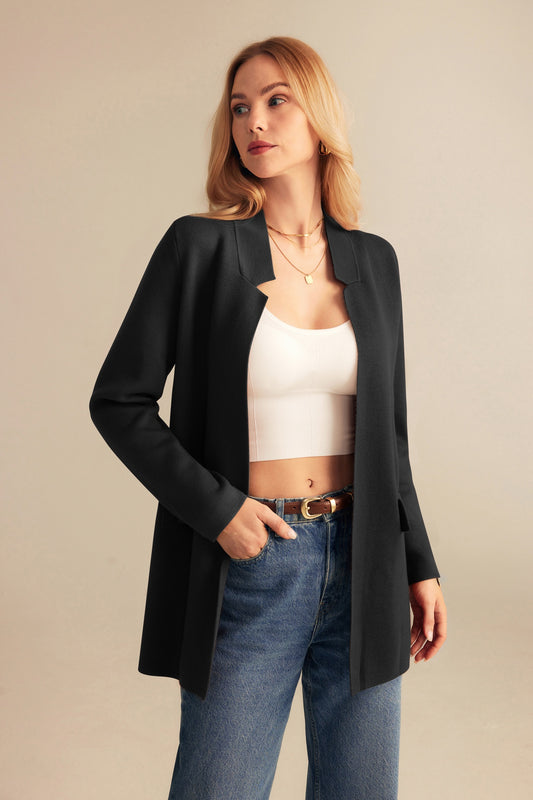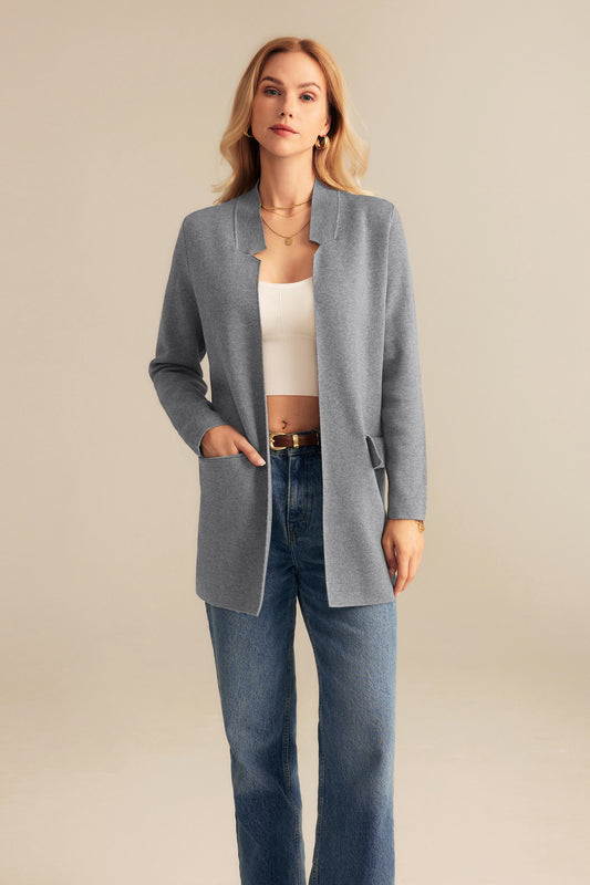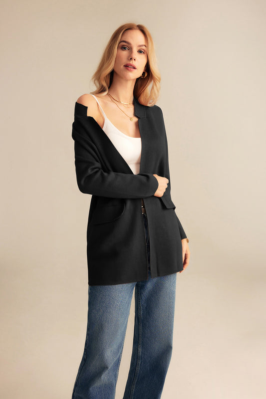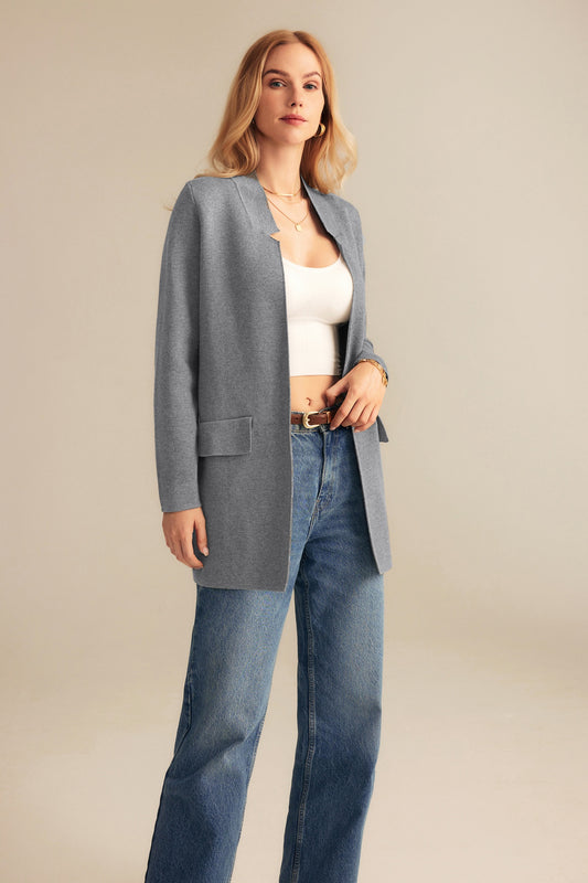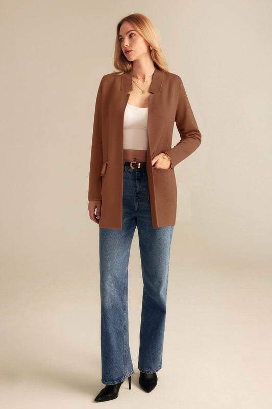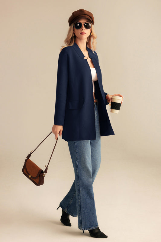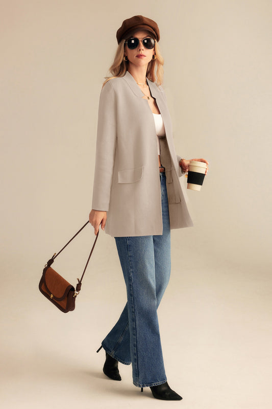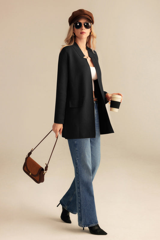 Open Front Notch Collar Long Sleeve Knit Cardigan Coat