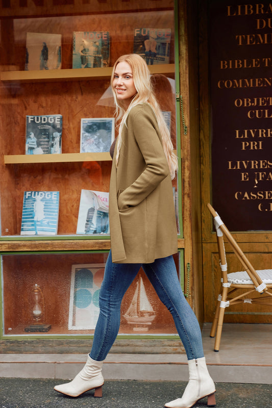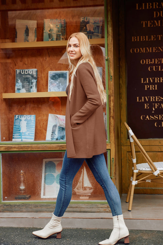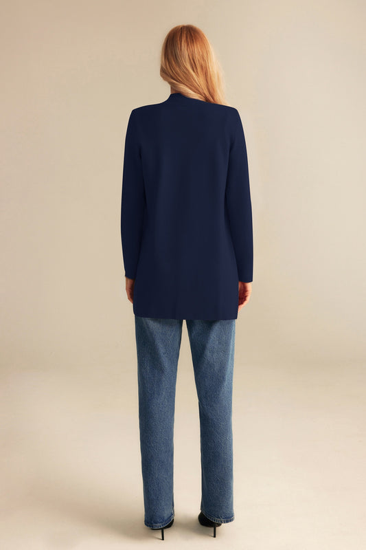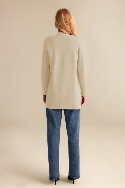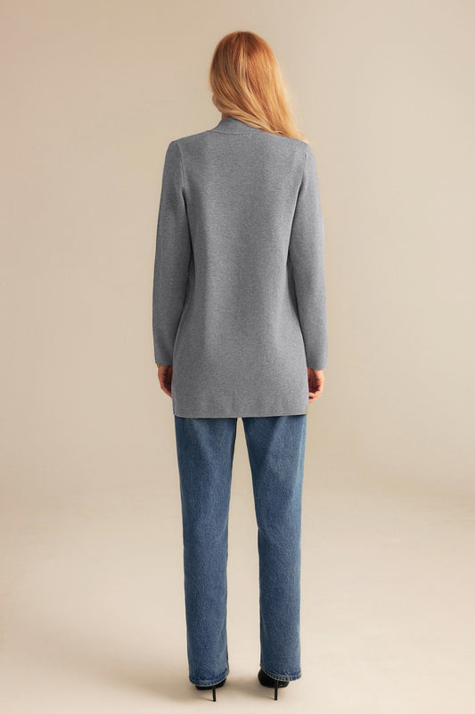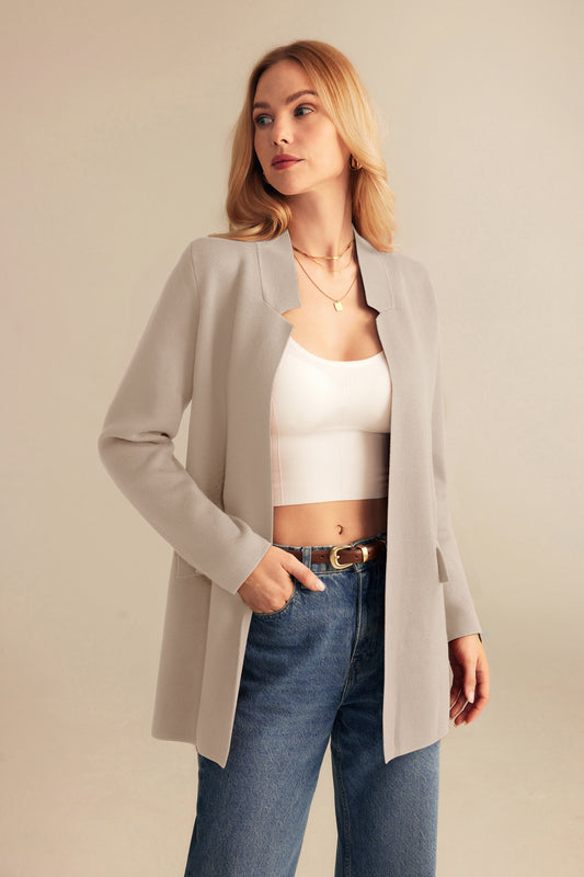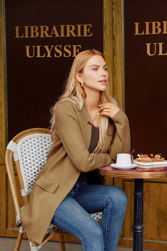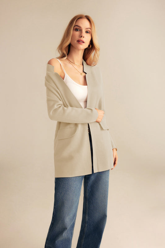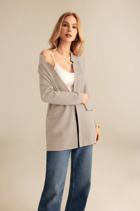 Open Front Notch Collar Long Sleeve Knit Cardigan Coat