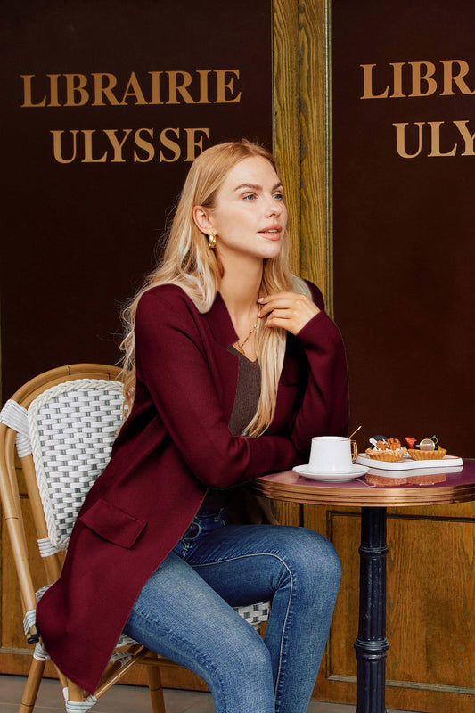GK Women Stylish Mid-Thigh Length Cardigan Long Sleeve Open Front Sweater