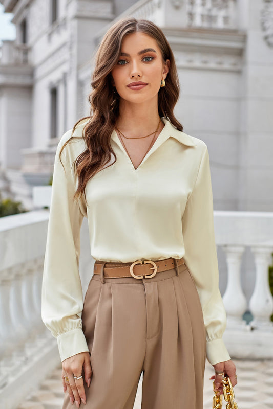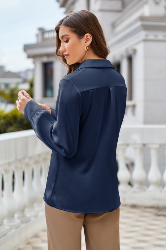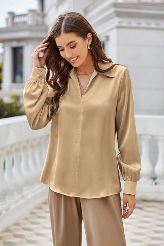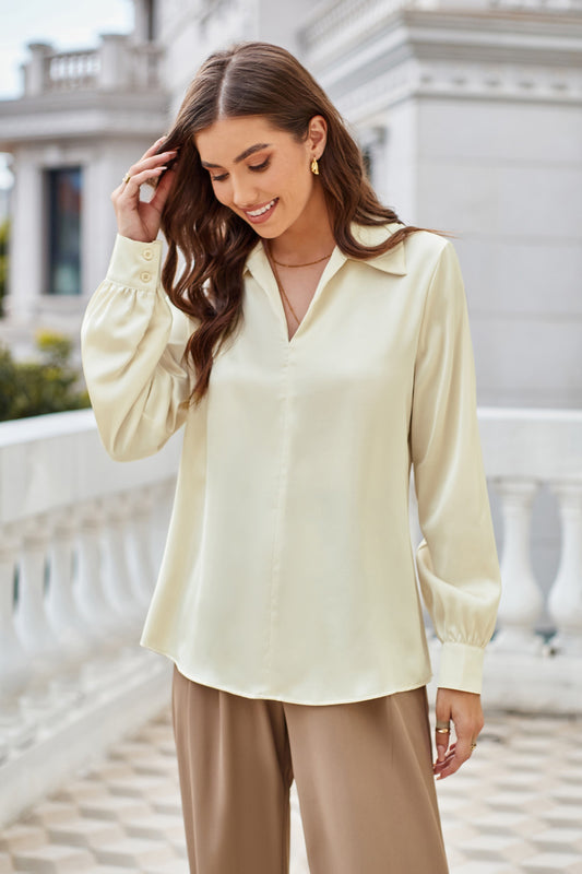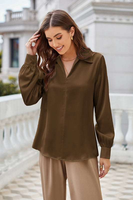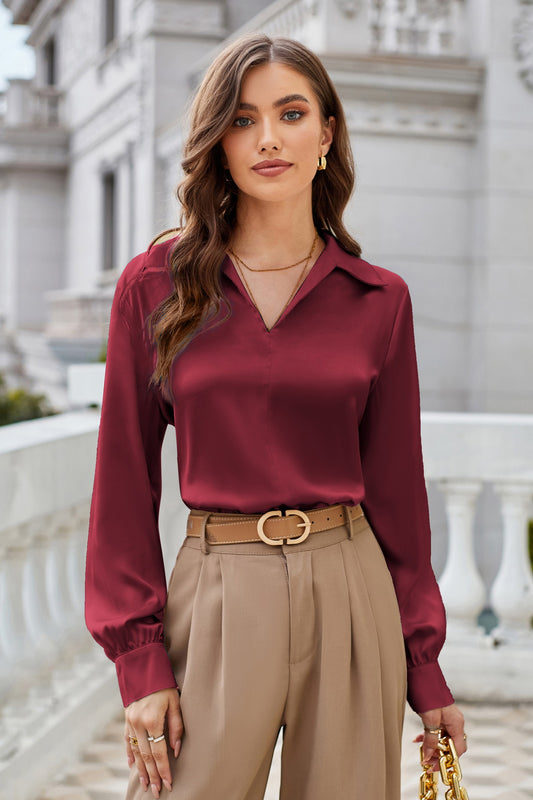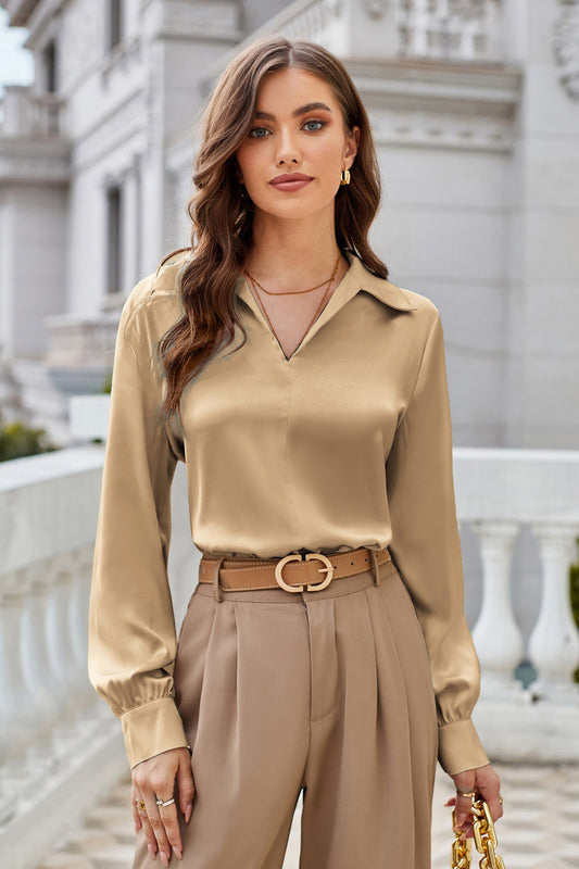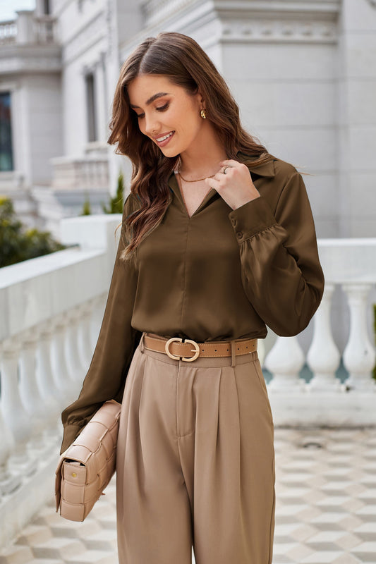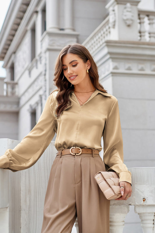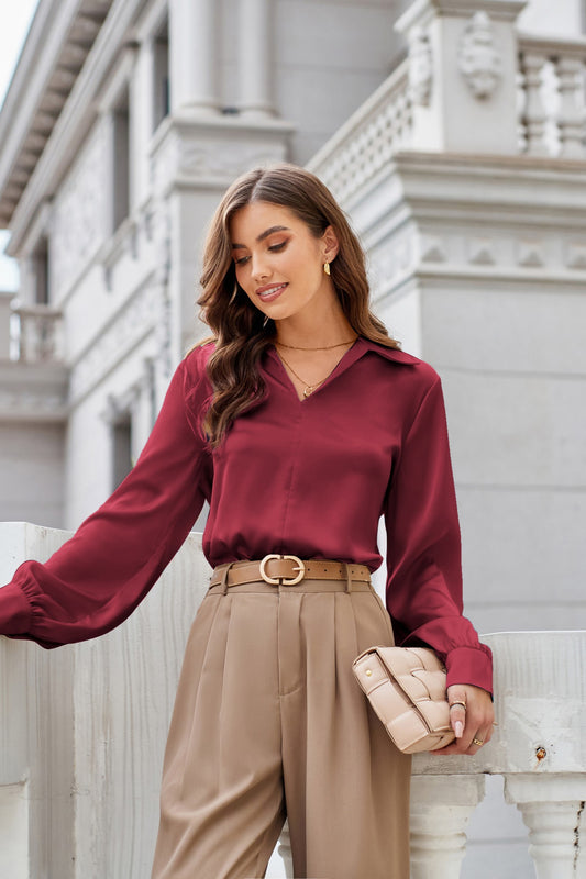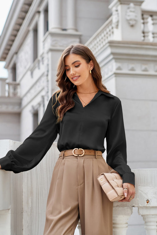 GK Women Lapel Collar Blouse Casual Loose Fit Comfy Long Sleeve V-Neck Tops