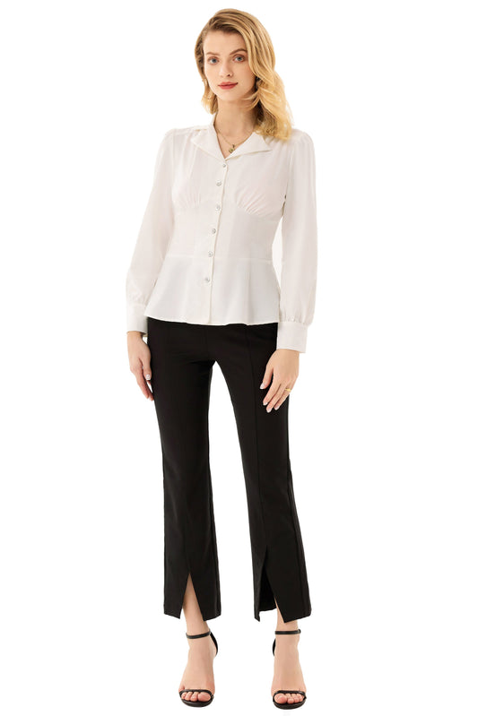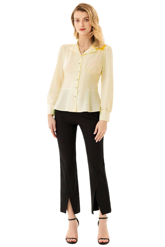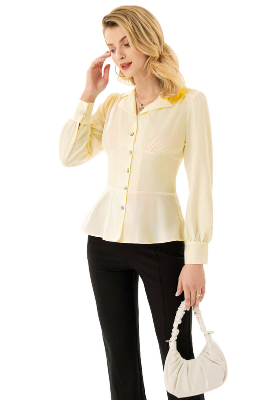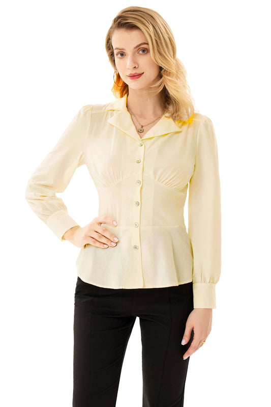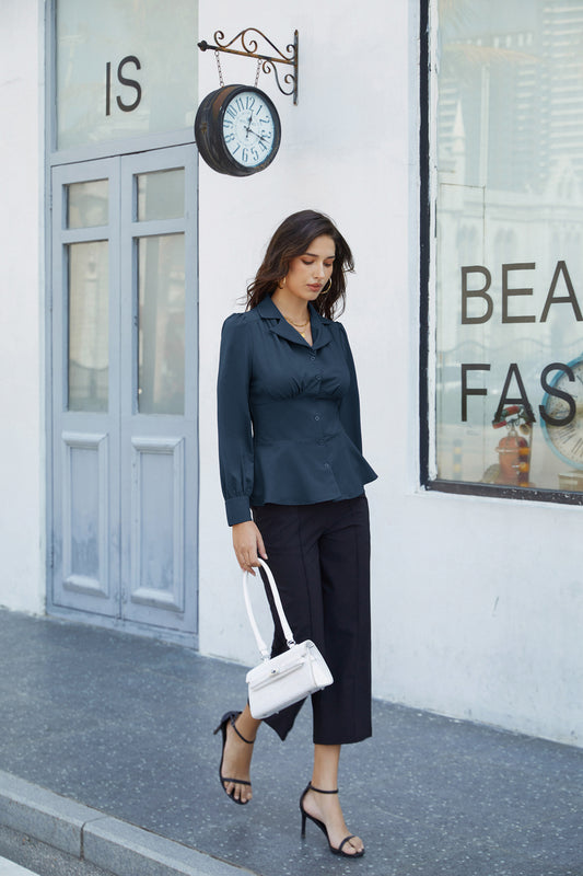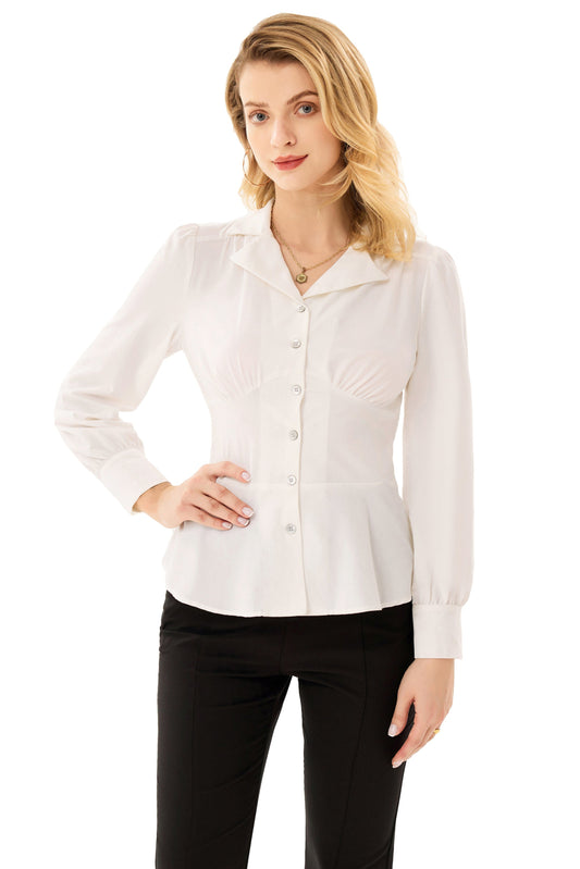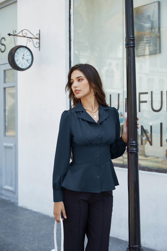 GK Button Down Shirts for Women Summer Peplum Tops Long Sleeve Work Blouse Collared Shirt Dressy