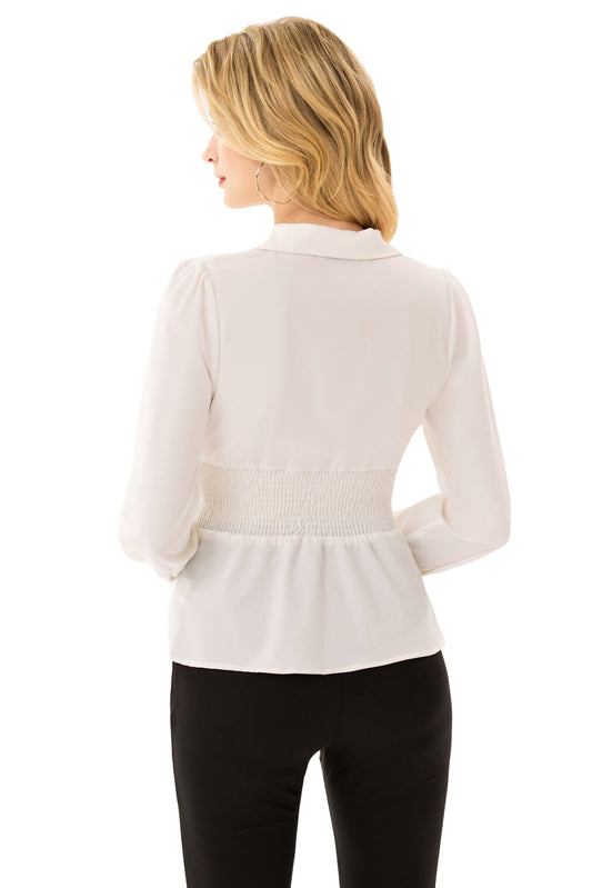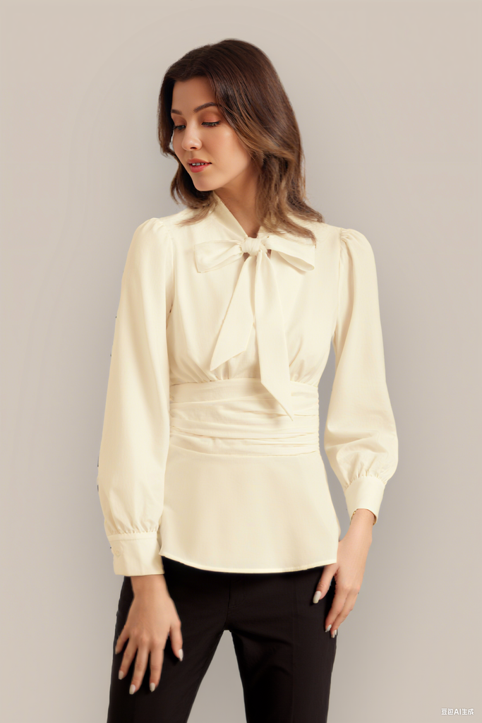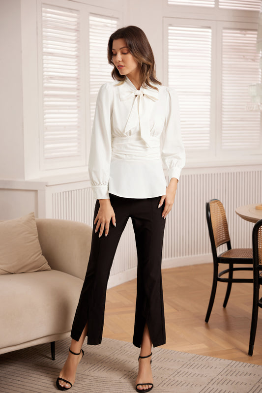 GK Defined Waist OL Puffed Bow-Knot Decorated Blouse