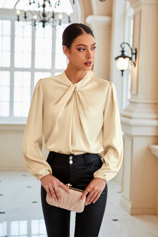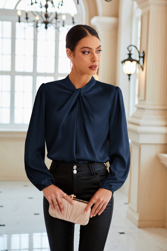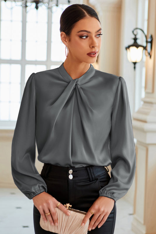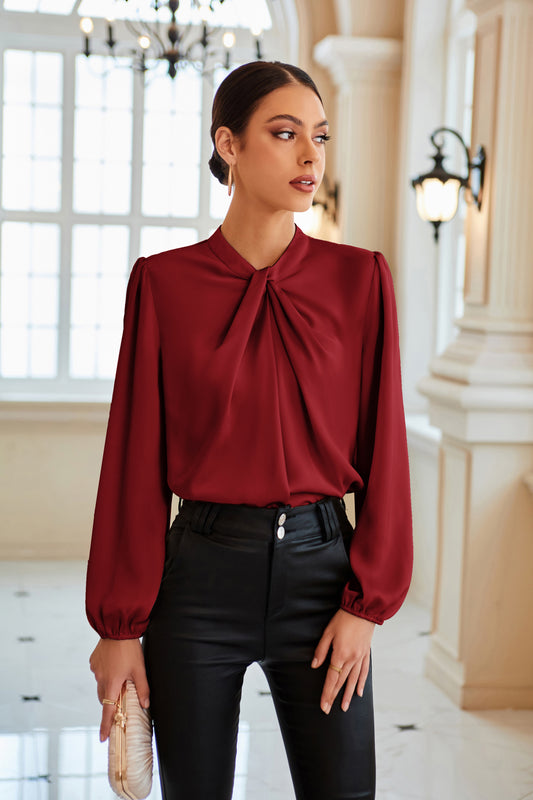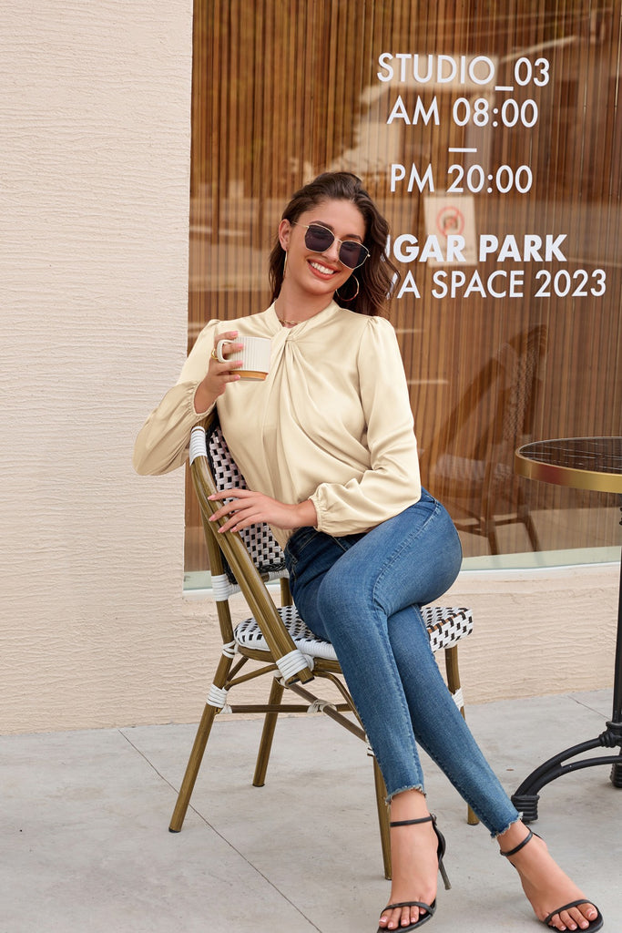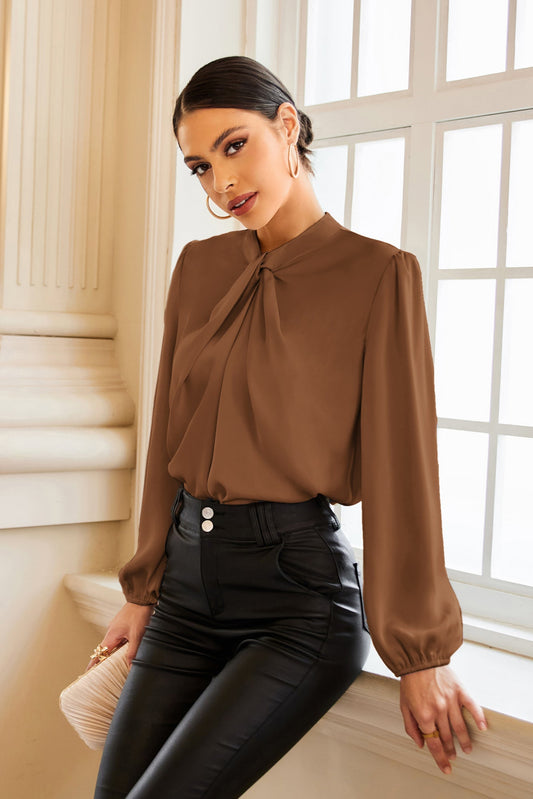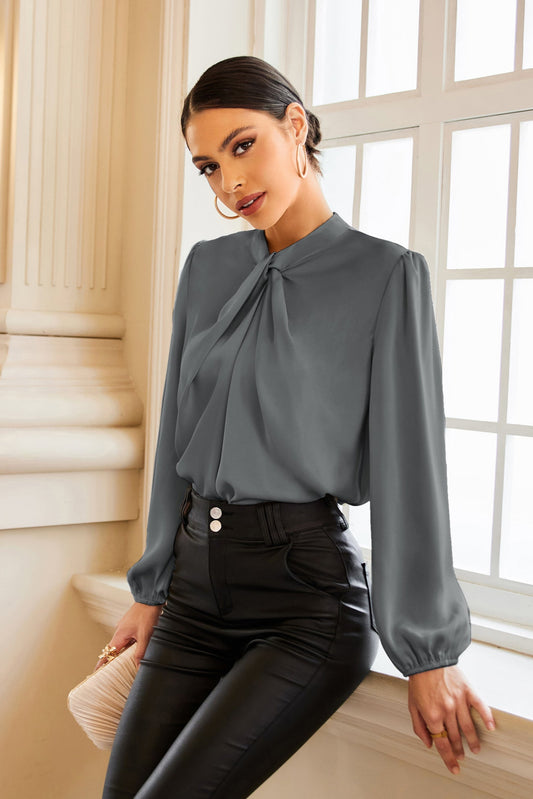 GK Knotted Neck Comfy Long Sleeve Keyhole Back Blouse