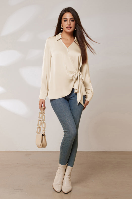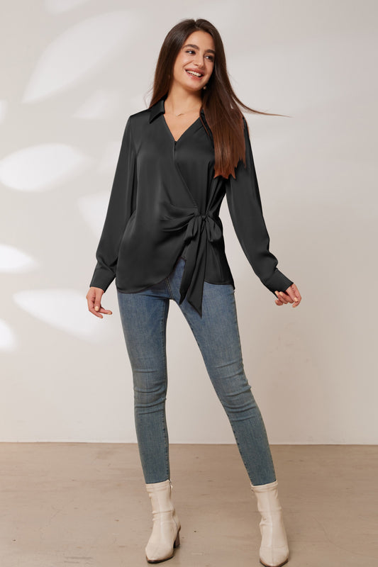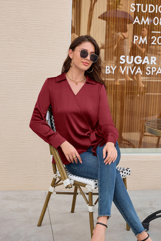 GK Surplice V-Neck Blouse Lapel Collar Pullover Tops